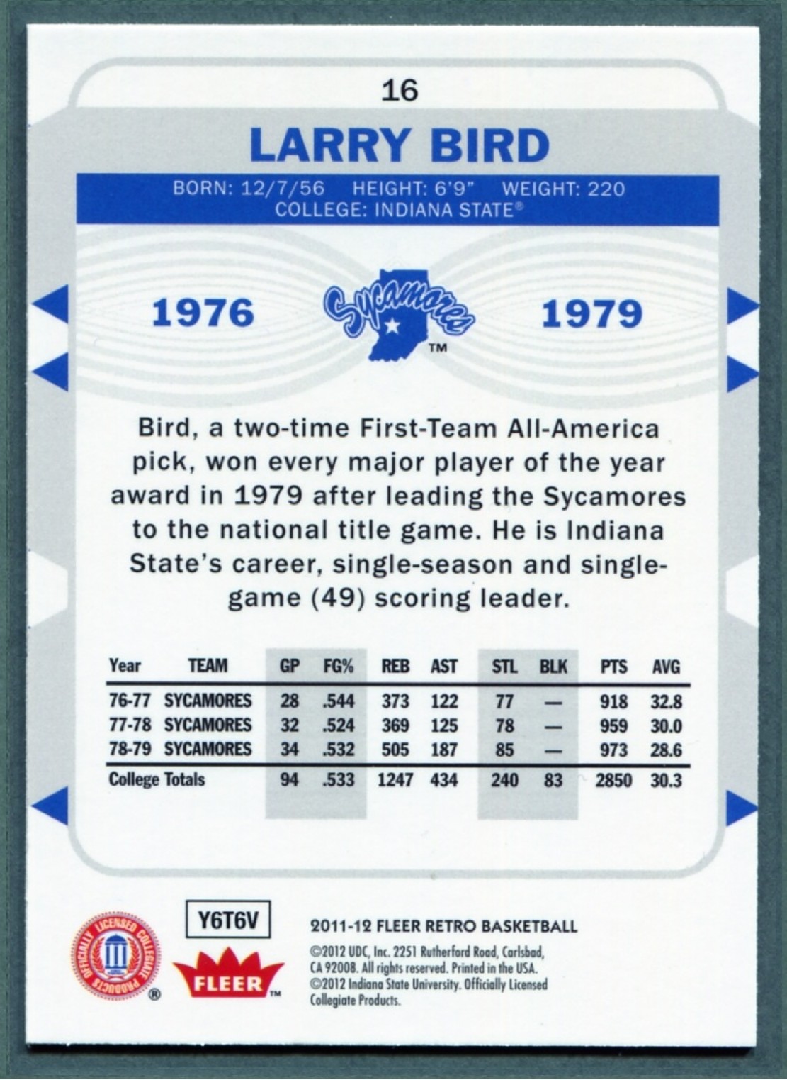 Item: 2011-12 Fleer Retro #16 Larry Bird