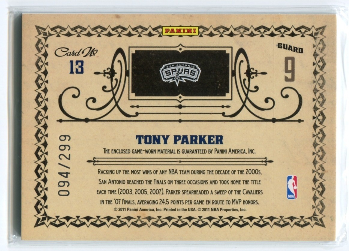 Item: 2010-11 Panini Gold Standard Gold Rings Materials #13 Tony Parker /299