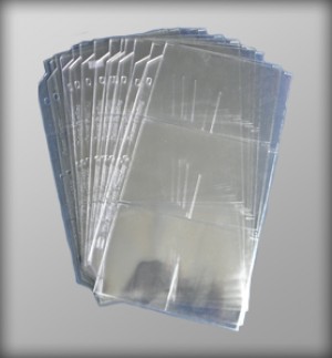 Pages house six cards to a page, the pages are a special size, approximately 8"x14