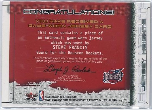 2001/02 FLAIR STEVE FRANCIS PATCH JERSEY HEIGHTS **3 COLOURS**