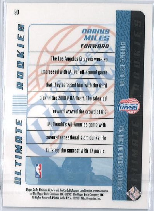 2000/01 UD ULTIMATE VICTORY DARIUS MILES RC 1132/1500