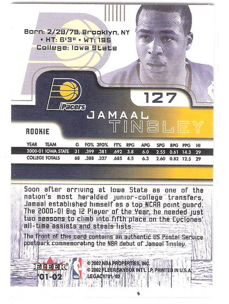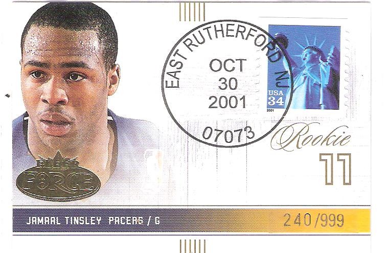 You are bidding on a 2001-02 Fleer Force Rookie Postmarks Jamaal Tinsley #127, numbered 240/999.