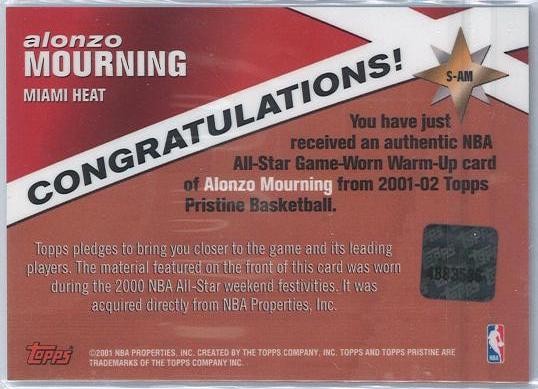 2001/02 TOPPS PRISTINE ALONZO MOURNING JERSEY SLICE OF A STAR