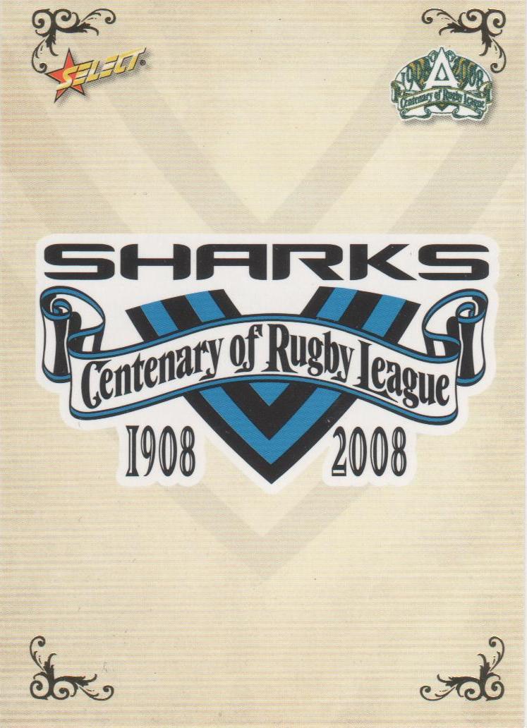 2008 Select Centenary Common # 107 Sharks Logo