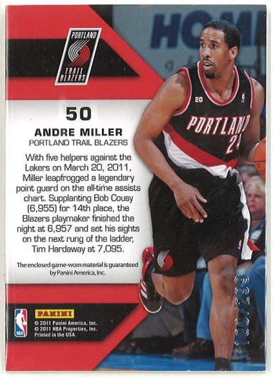 2012/13 PANINI TOTALLY CERTIFIED ANDRE MILLER JERSEY FABRICS OF THE GAME 100/299