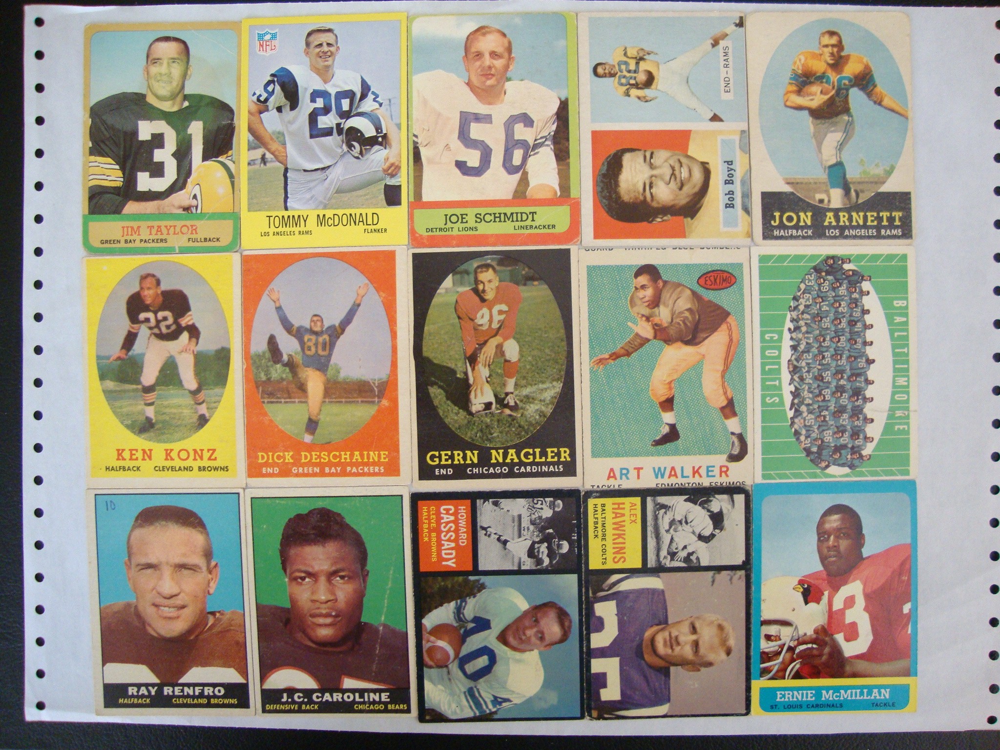 45 vintage NFL cards with HOFers Jim Taylor, Tommy McDonald, Joe Schmidt, David Robinson. Generally lower grade, filler lot.