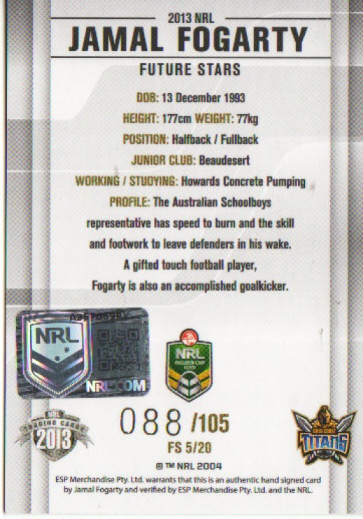 2013 ESP NRL ELITE FUTURE STAR JAMAL FOGARTY TITANS