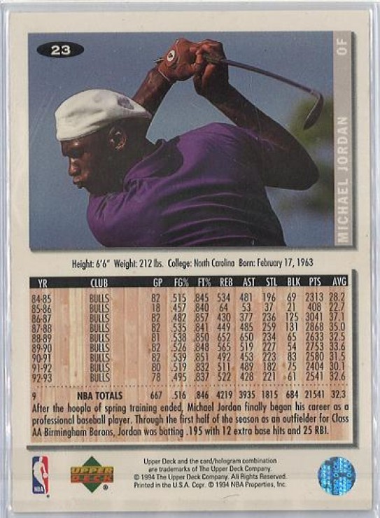 1994/95 UPPERDECK COLLECTORS CHOICE MICHAEL JORDAN PARALLEL SILVER SIGNATURE NO 23