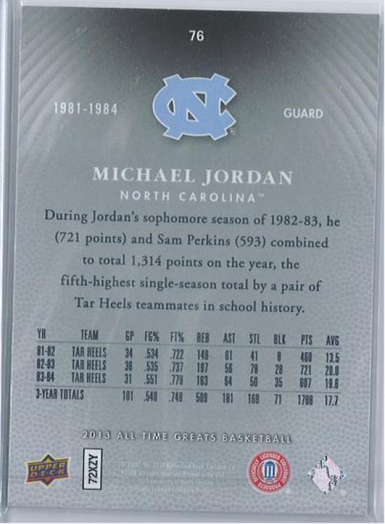 2013 UPPERDECK ALL-TIME GREATS ATG MICHAEL JORDAN BASE NO 76 087/150