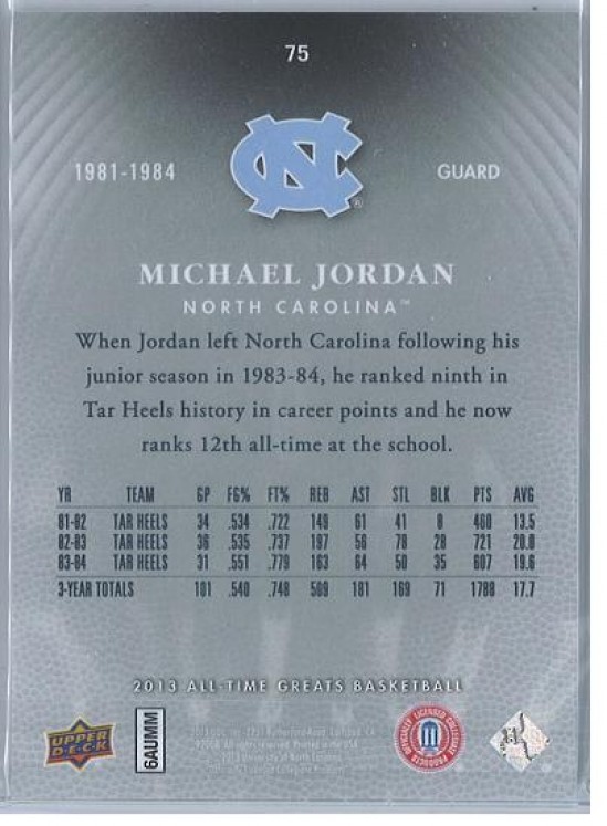 2013 UPPERDECK ALL-TIME GREATS ATG MICHAEL JORDAN BASE NO 75 006/150
