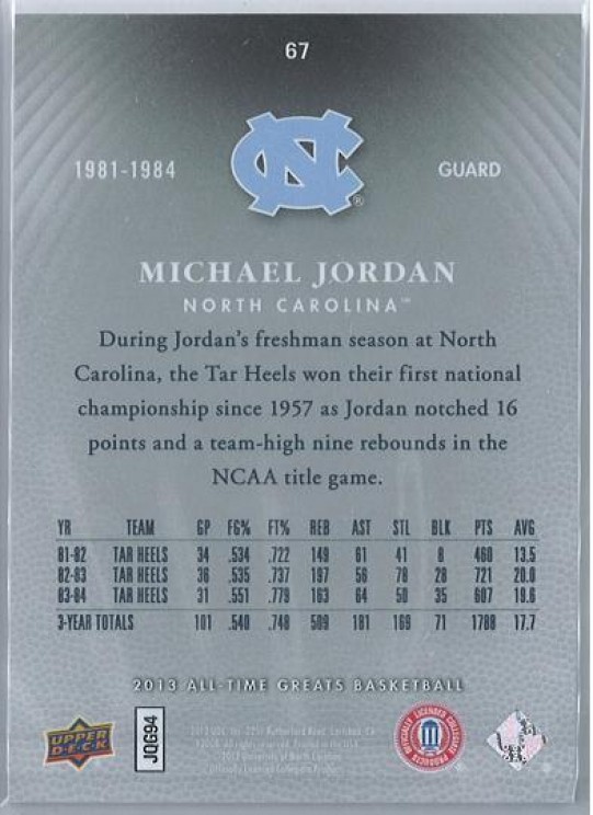 2013 UPPERDECK ALL-TIME GREATS ATG MICHAEL JORDAN BASE NO 67 081/150