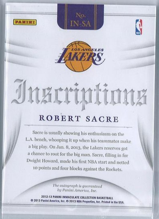 2012/13 PANINI IMMACULATE ROBERT SACRE AUTO INSCRIPTIONS 79/99
