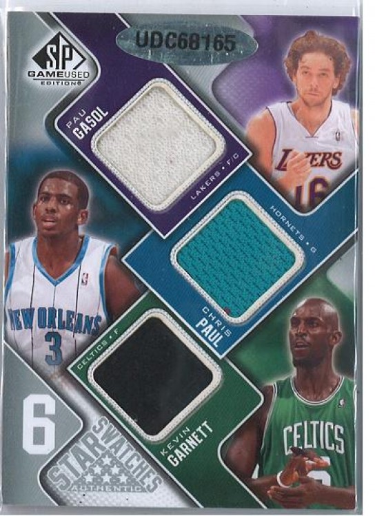2009/10 UD SP GAME USED CHRIS BOSH / JERMAINE O'NEAL / YAO MING / PAU GASOL / CHRIS PAUL / KEVIN GARNETT 6 STAR SWATCHES 17/99