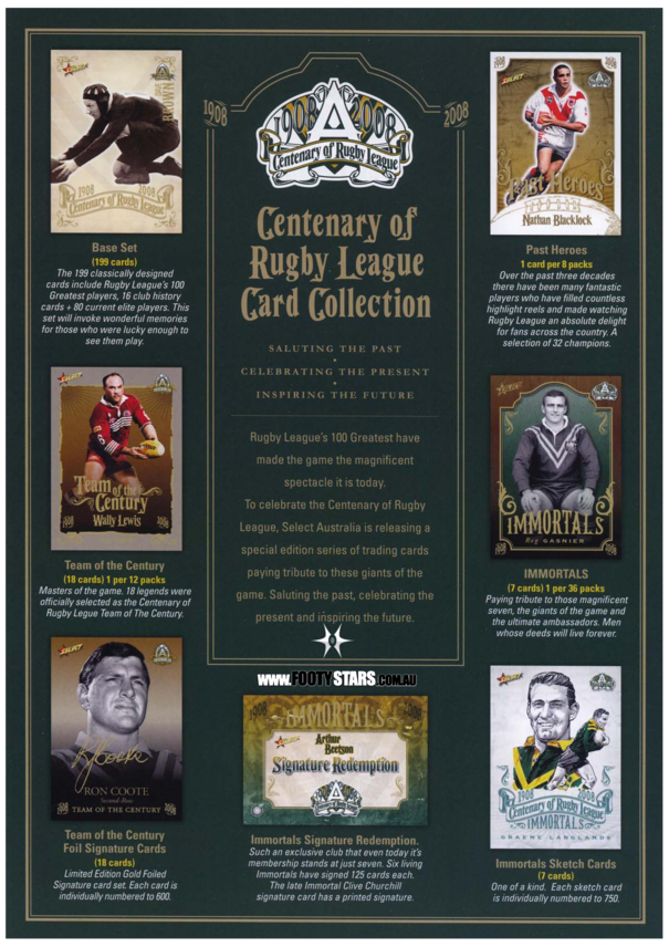 This is a case break for 2008 Select Centenary. You will be purchasing one box from this unopened case.