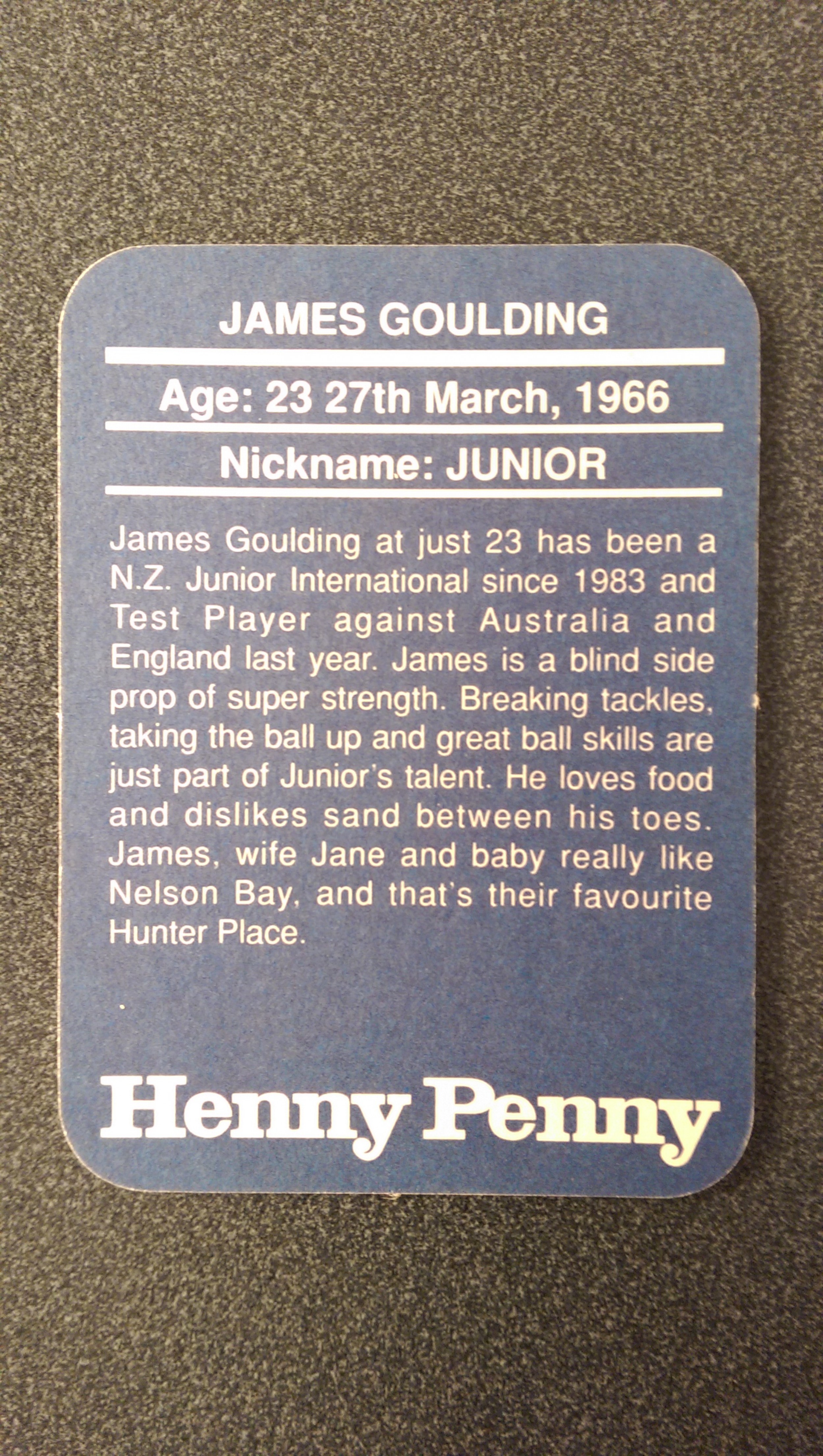 Newcastle Knights James Goulding card issued by Henny Penny in 1990 in excellent condition.