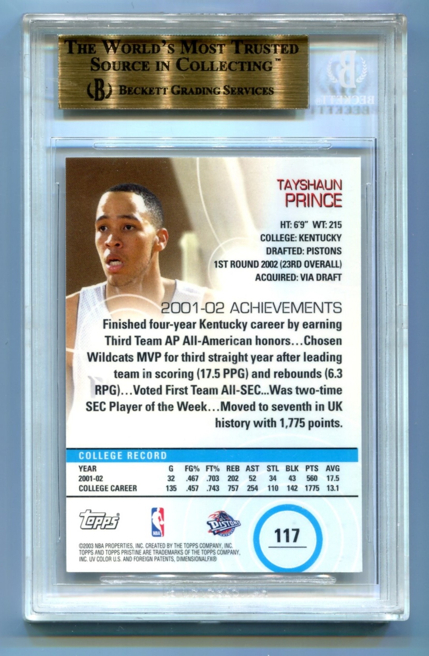 This listing is for 2002-03 Topps Pristine #117 Tayshaun Prince C RC - Detroit Pistons - BGS 9.5 GEM MINT.