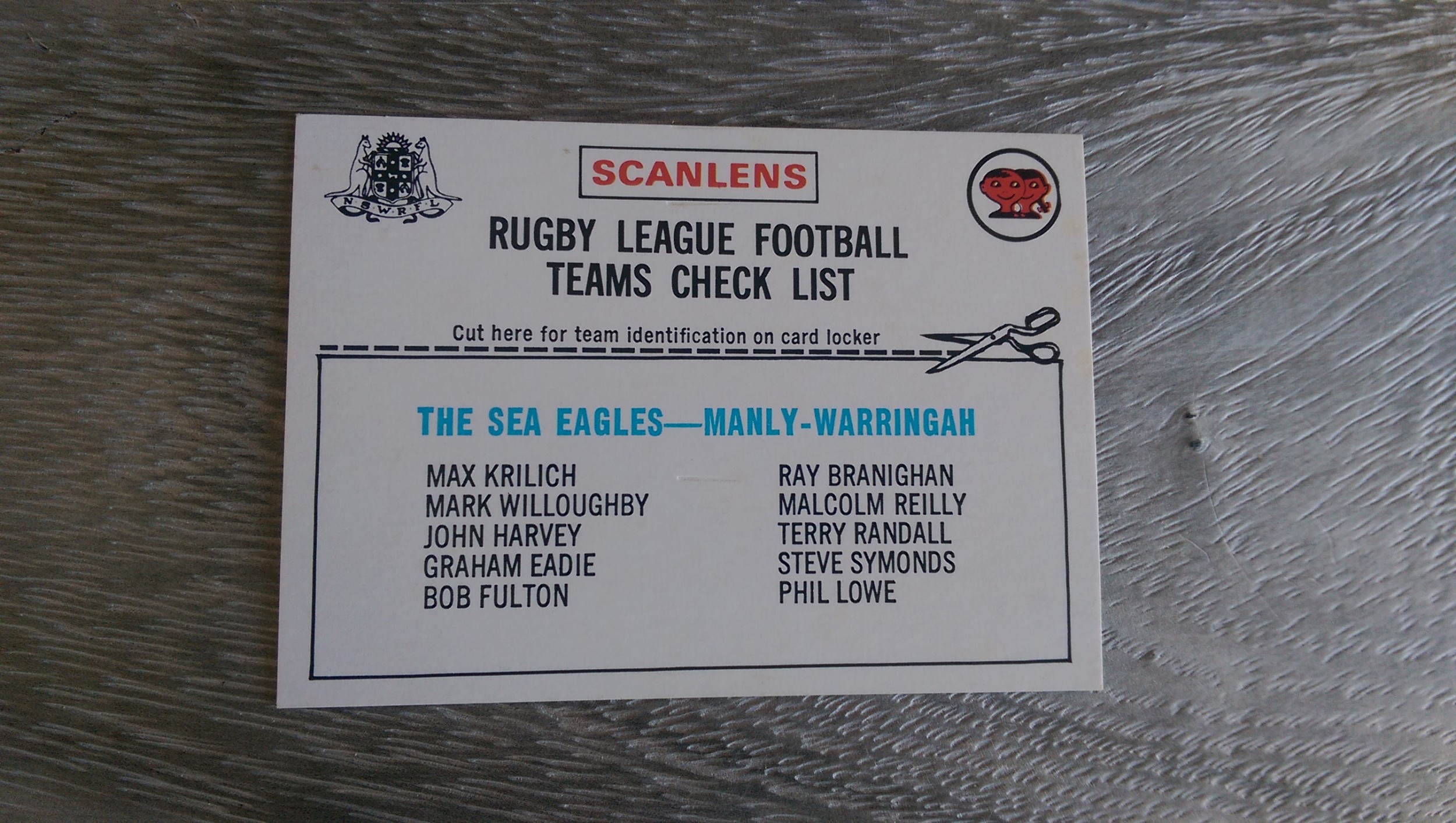 1976 Scanlens Rugby League Manly Warringah Sea Eagles unmarked checklist card