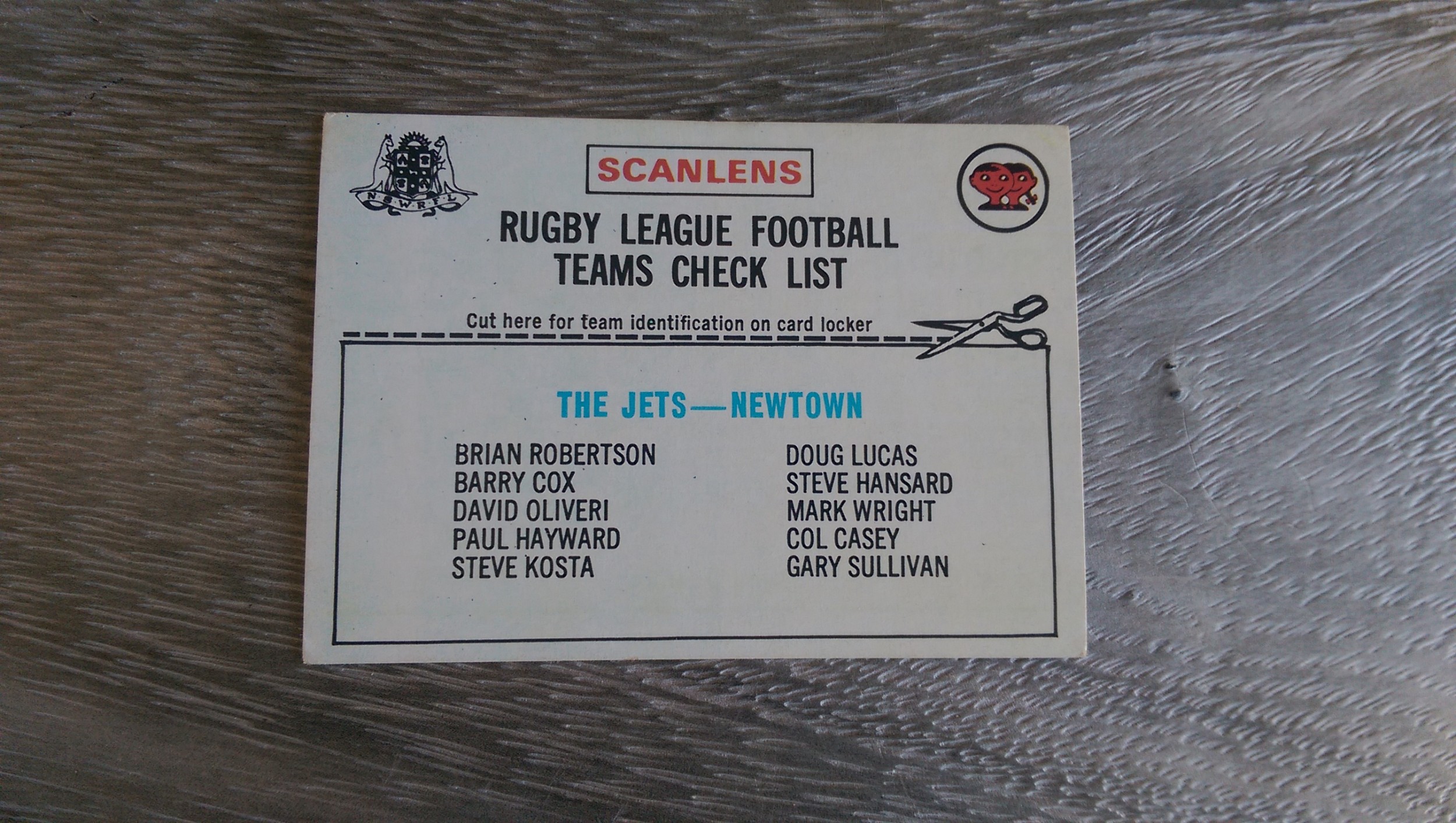1976 Scanlens Rugby League Newtown Jets unmarked checklist card