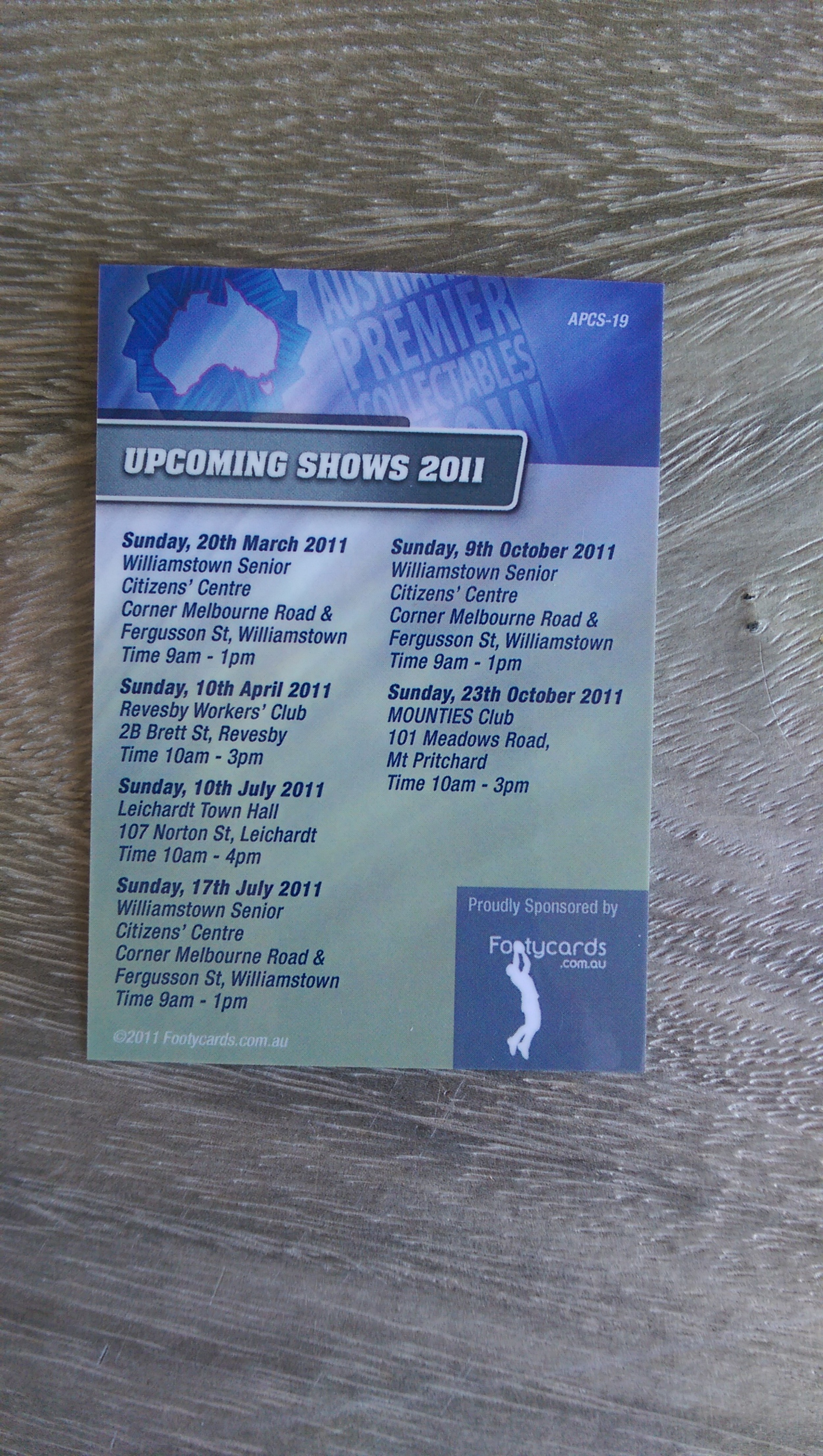 Here is a APCS-19 promo card (No 101 of 300) for APCS shows issued in 2011 and it is in excellent condition.
