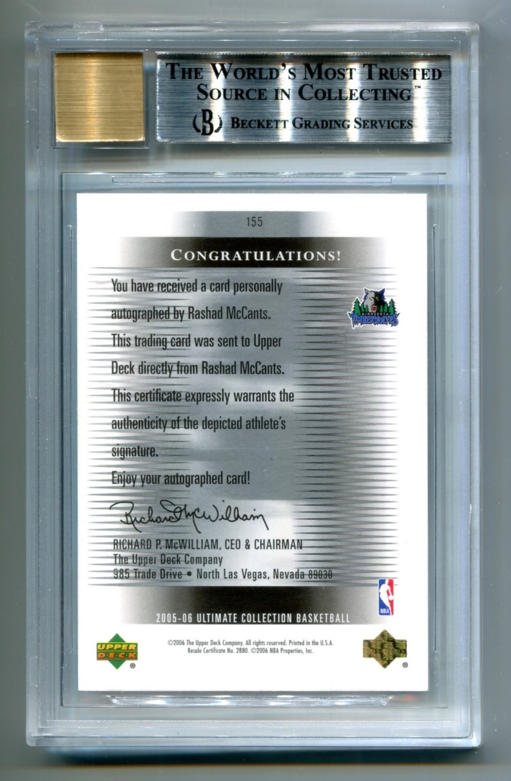 This listing is for 2005-06 Ultimate Collection #155 Rashad McCants AU RC 015/250 - Minnesota Timberwolves - BGS 9.5 GEM MINT.