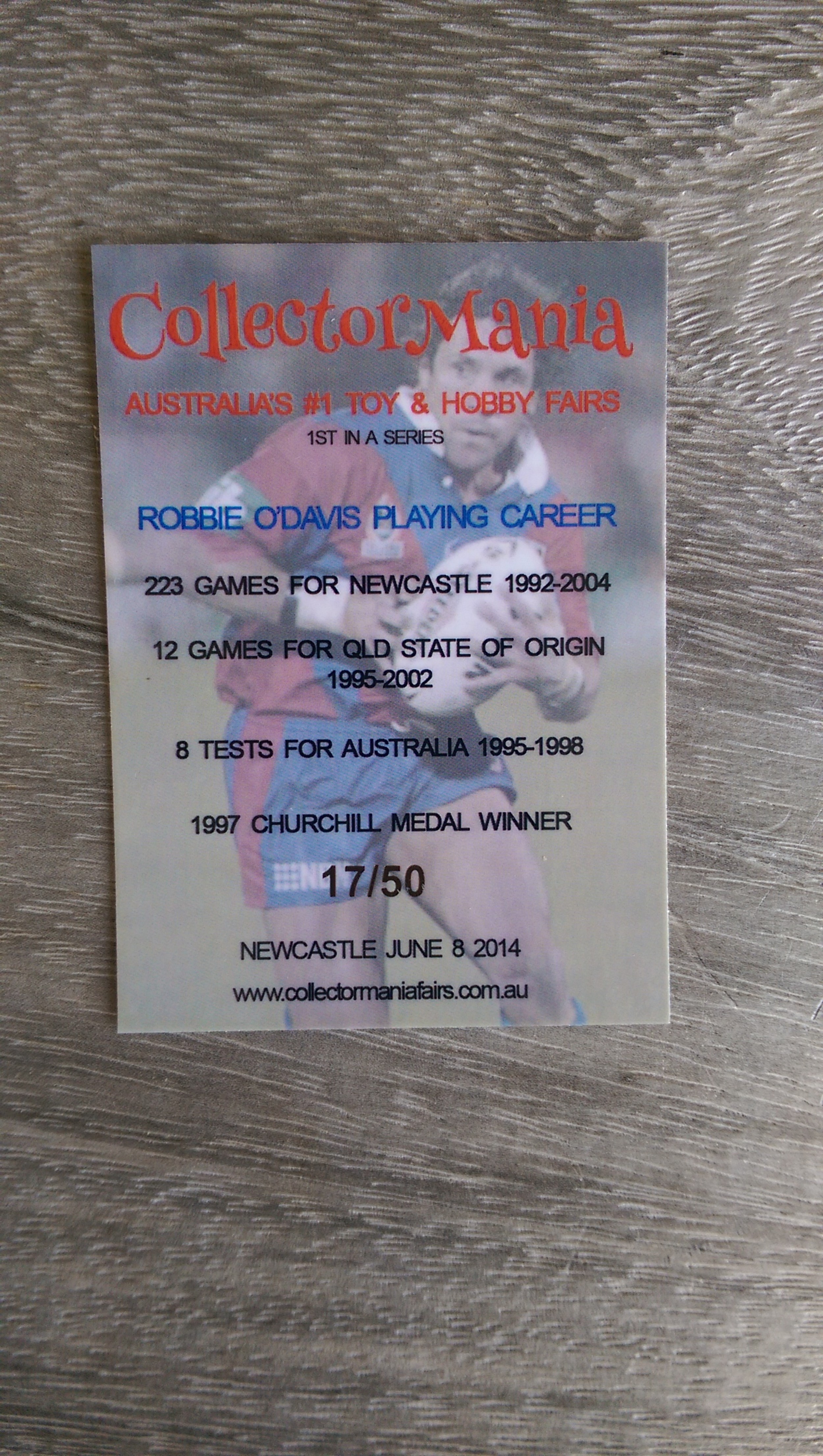 Here is a Robbie O'Davis signed card (Number 17 of 50) issued at the Collectormania fair on 8 June 2014 at Newcastle.
