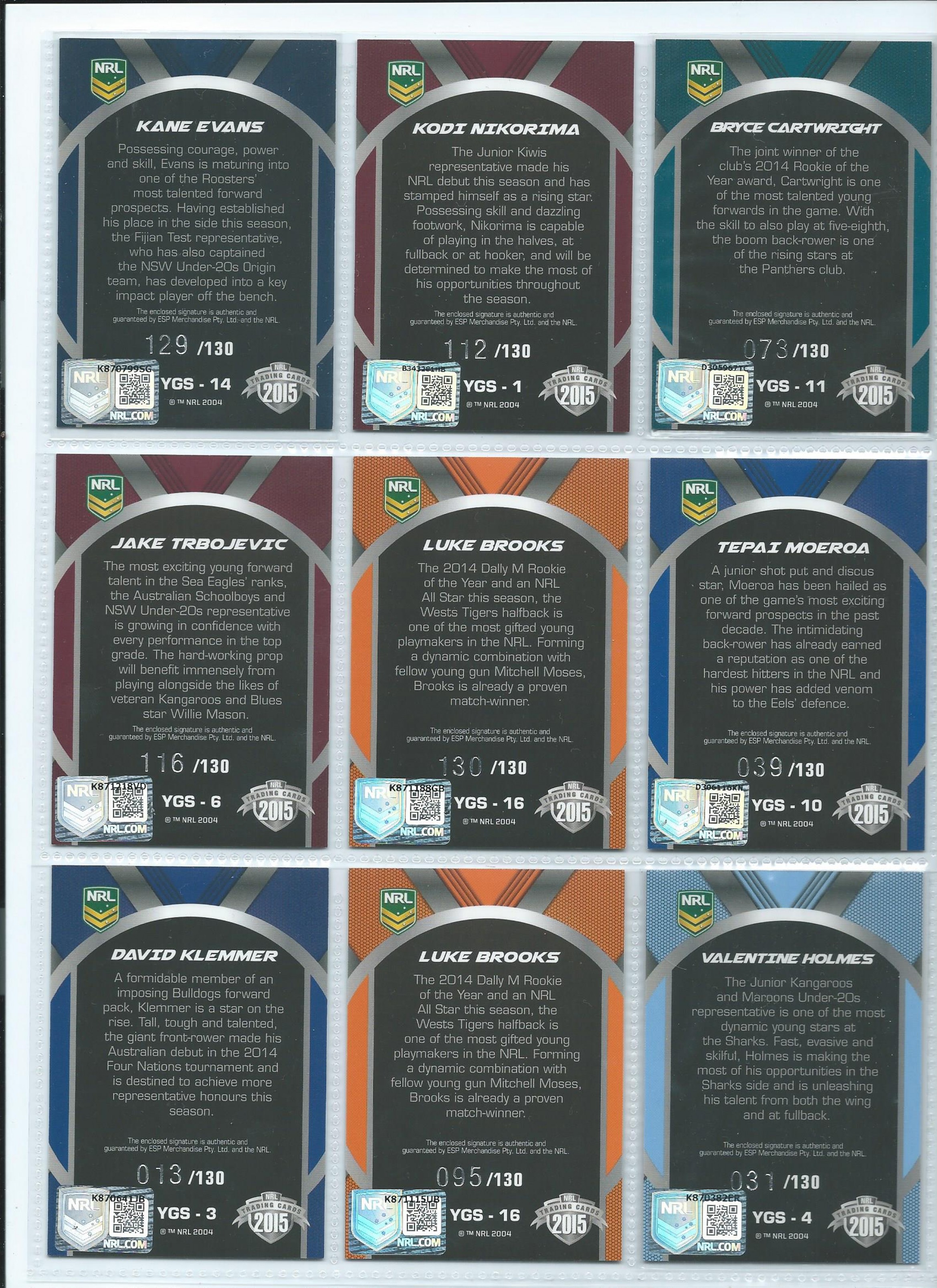 2015 ESP NRL Elite Young Guns Signature TIGERS Luke BROOKS YGS-16 #095/130 (BOTTOM ONE)
