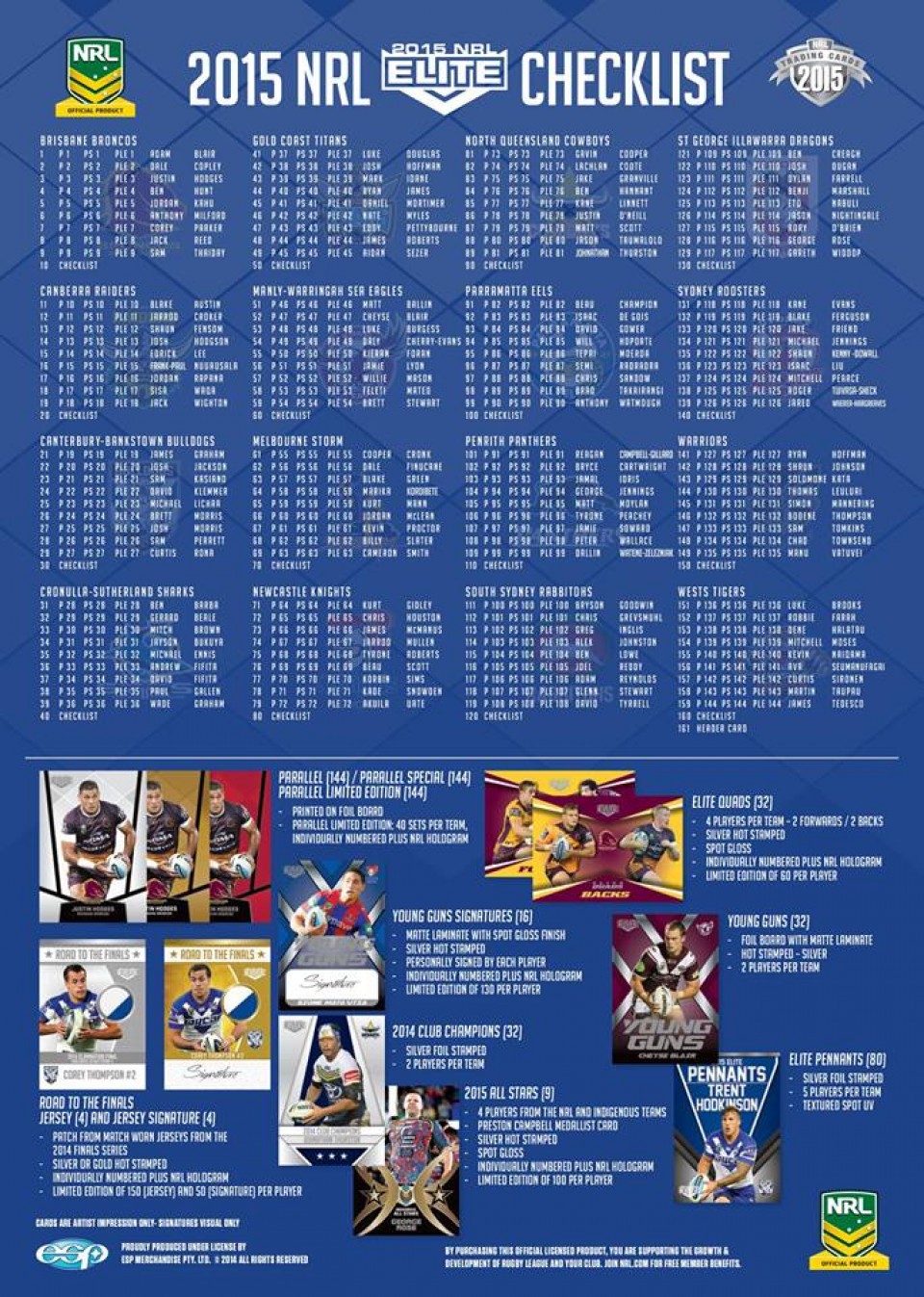 EUREKA SPORTS CARDS NRL BREAK #107 - 2015 ELITE BREAK.