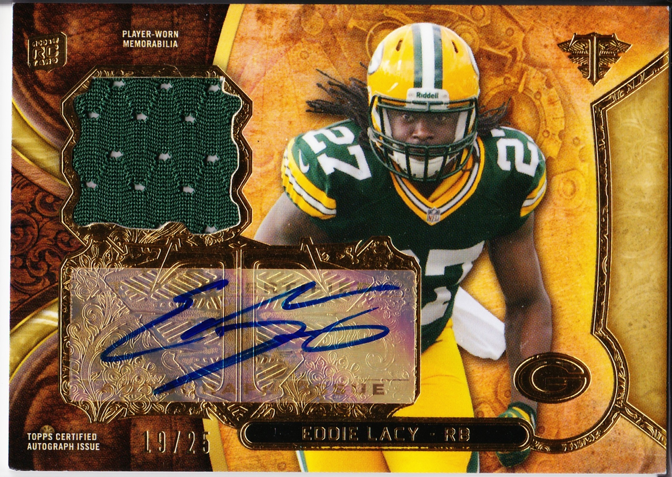 2013 Topps Triple Threads Rookie Autograph Relics Gold Eddie Lacy /25 - Green Bay Packers / Alabama