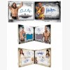 Two WWE rivals are featured on a book card, along with a sticker autograph and a jumbo relic for each. Sequentially #'d to 5.