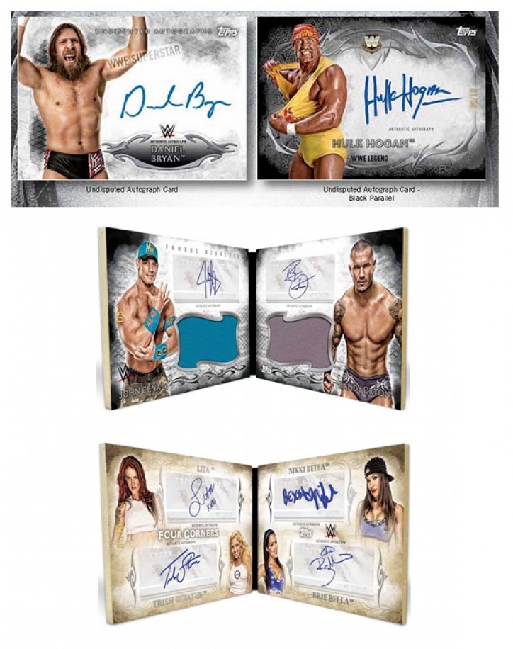 Most high-end WWE product to date - WWE Undisputed! Topps WWE Undisputed will contain more autograph cards than any other previously-released WWE product, and feature the best-of-the-best WWE Superstars, Legends, Divas, and NXT stars, in stunning designs on a thick card stock.