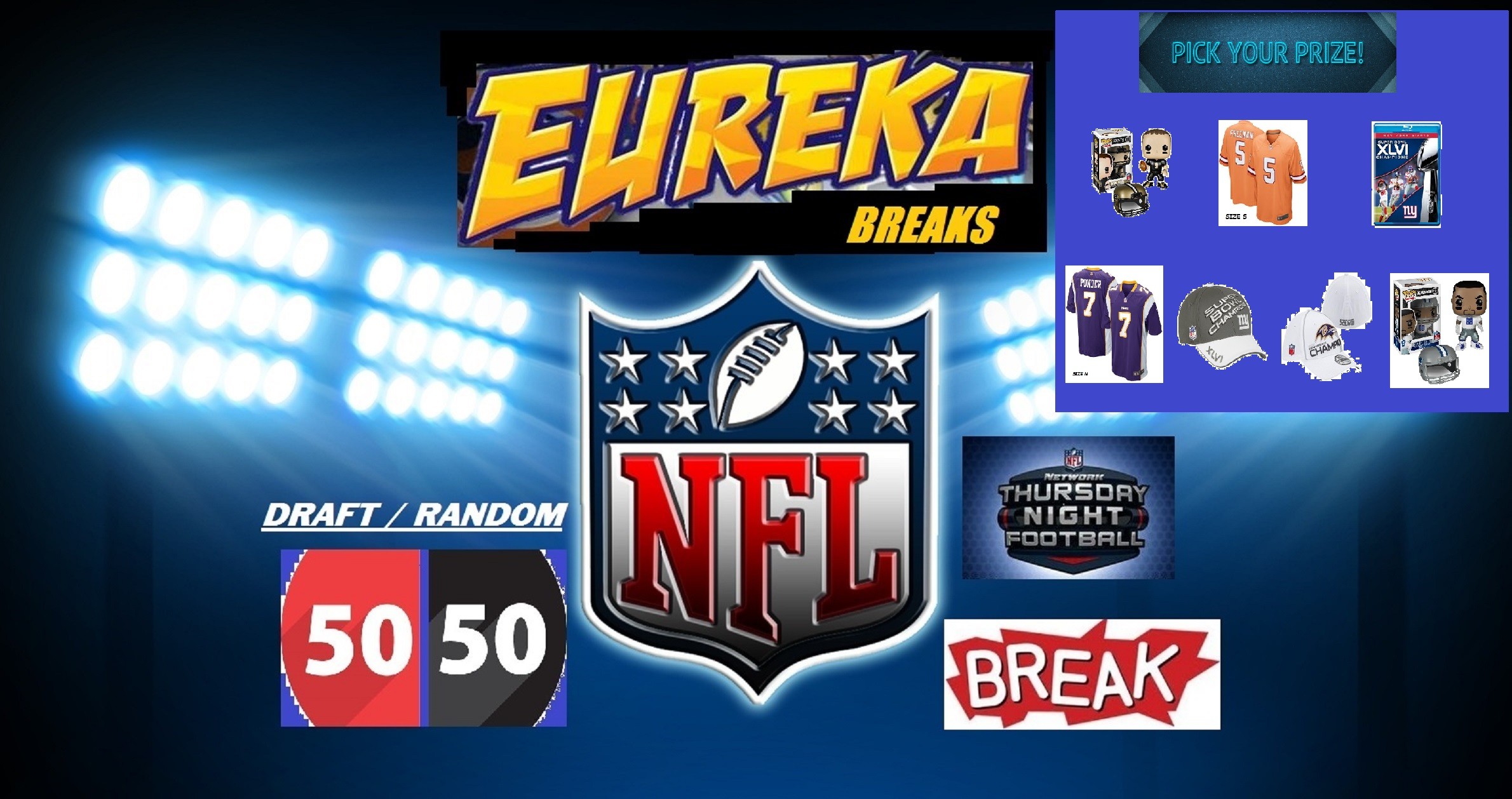#379 EUREKA SPORTS CARDS NFL 50-50 BREAK