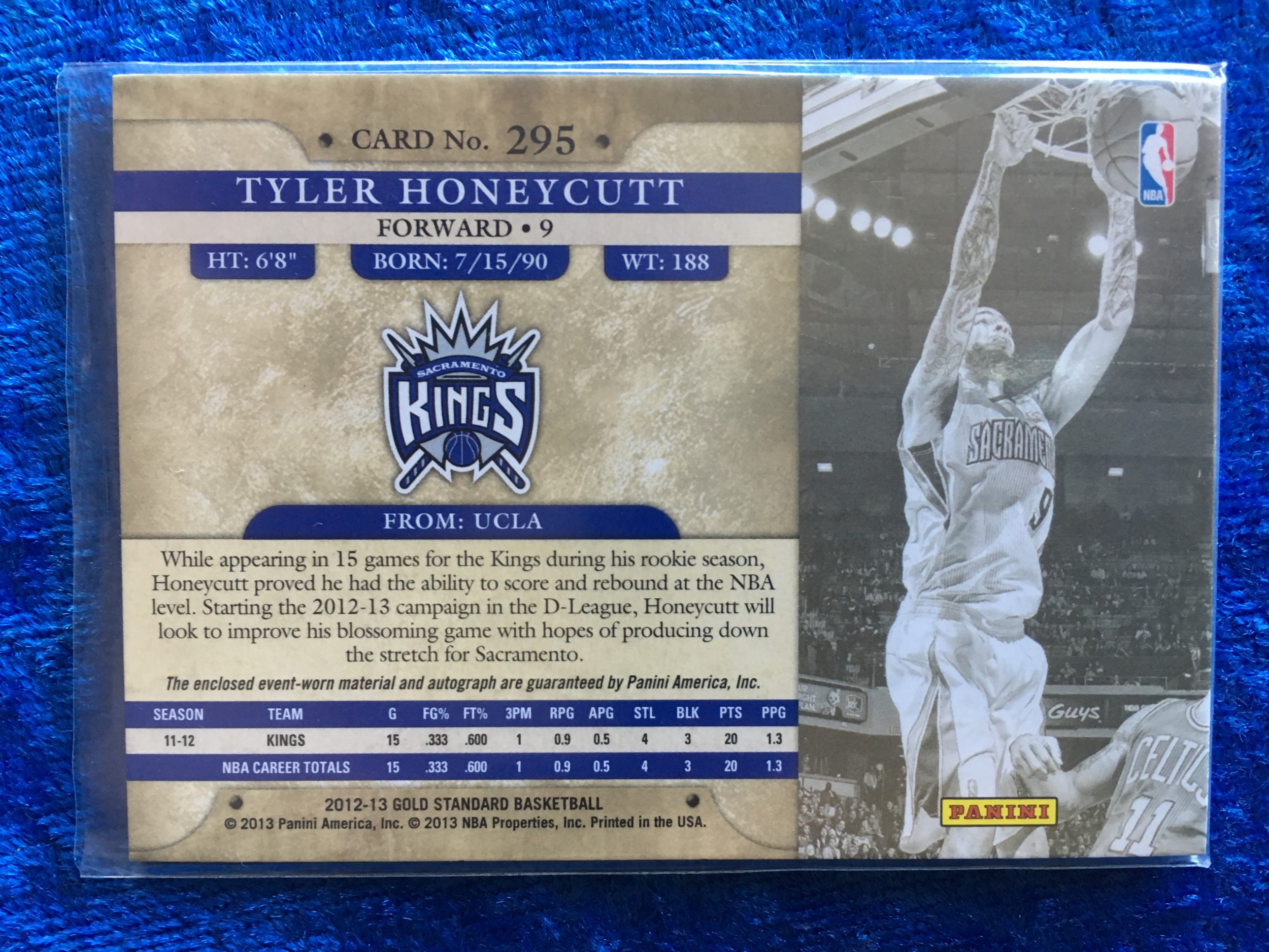Tyler Honeycutt Sacreamento Kings 2012-13 Panini Gold Standard Rookie Autograph Jersey Swatch