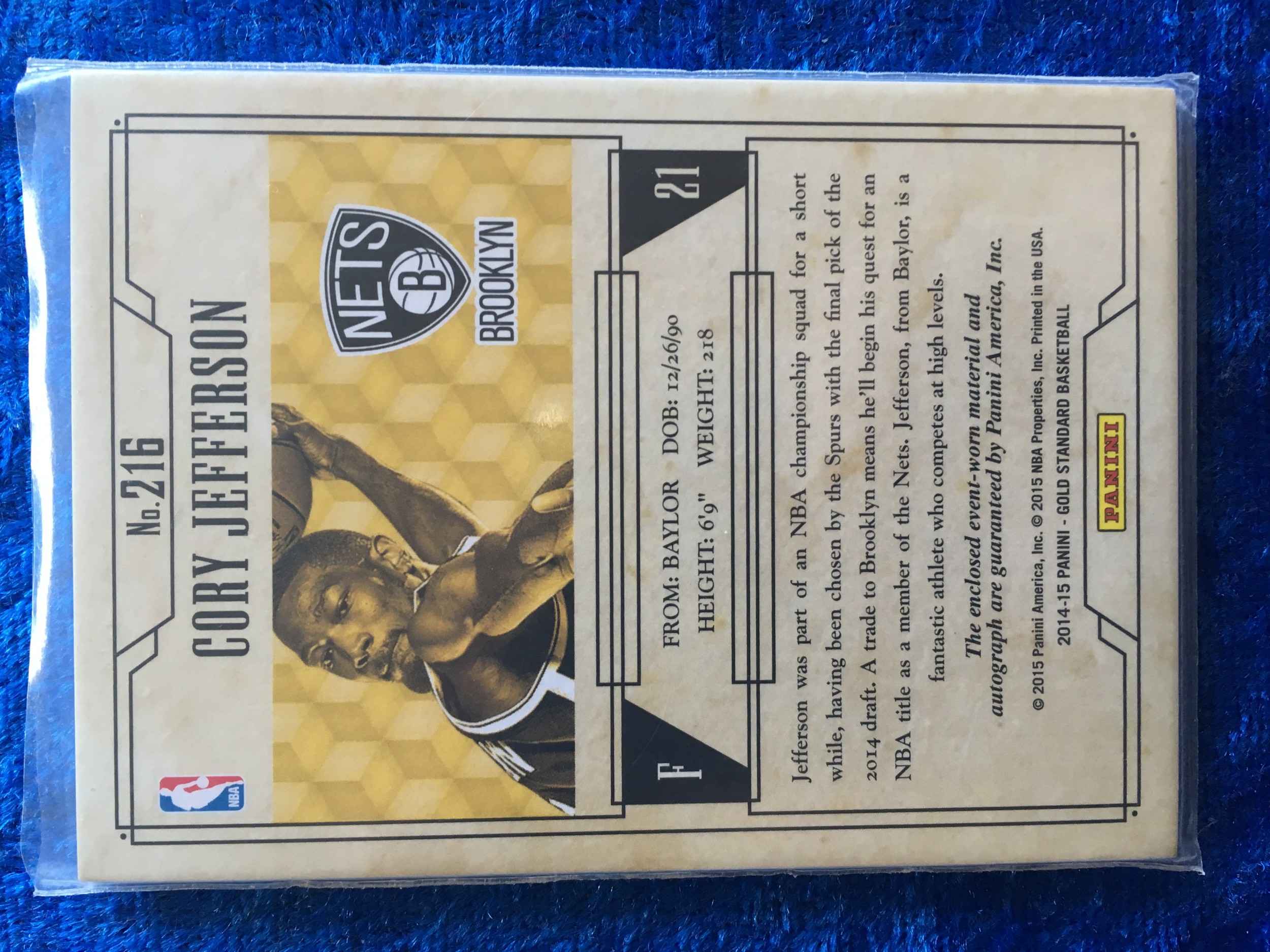 Cory Jefferson Brooklyn Nets 2014-15 Panini Gold Standard Rookie Autograph Jersey Swatch #169/199