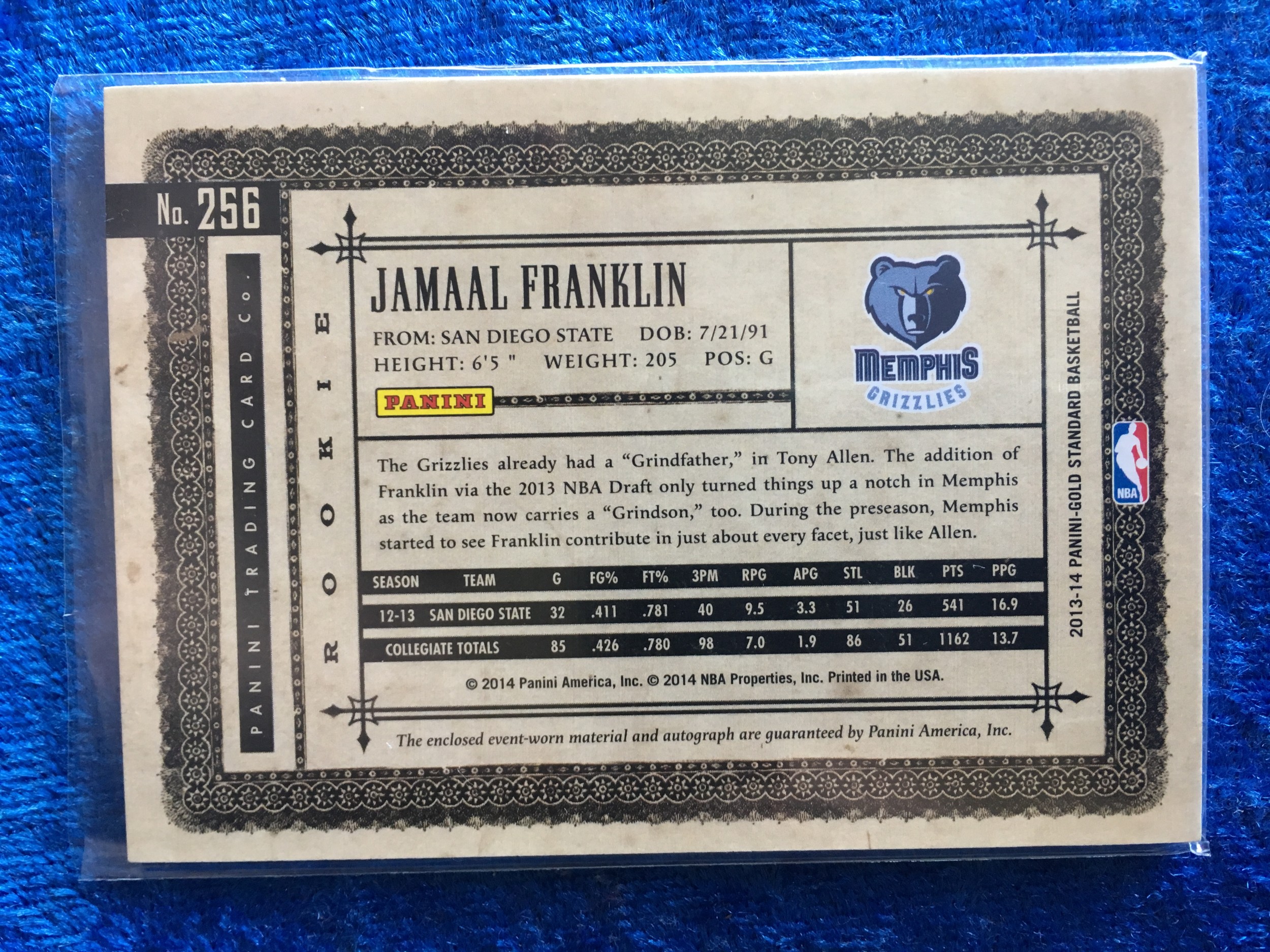 Jamaal Franklin Memphis Grizzlies 2013-14 Panini Gold Standard Rookie Autograph Jersey Swatch