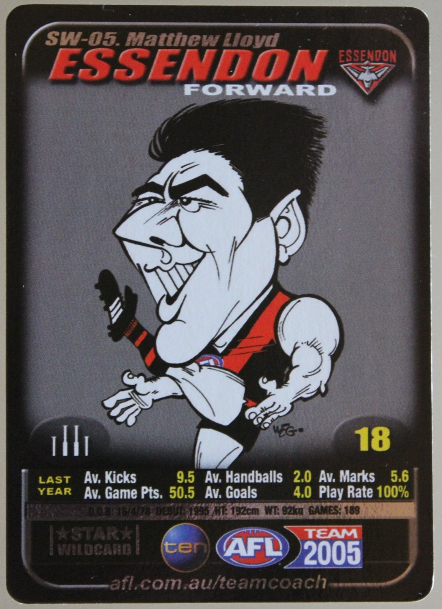 Item: 2005 TeamCoach WEG Star Wild SW-05 Matthew Lloyd - Essendon Bombers