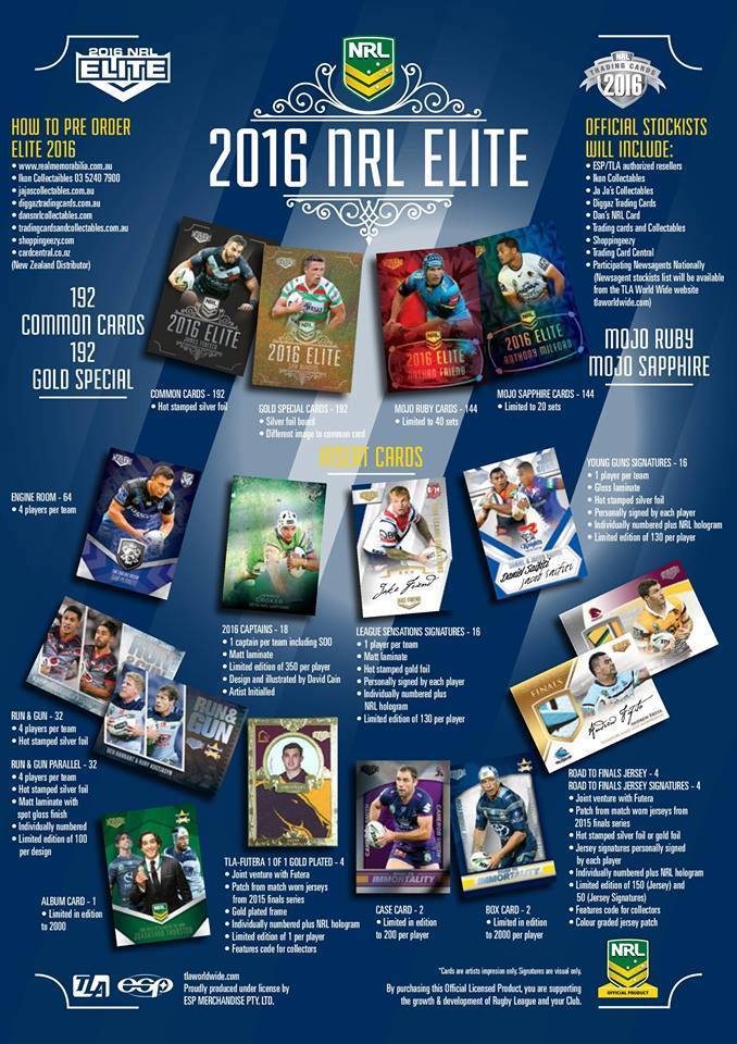In this break we will be busting 1 unopened case of 2016 ESP NRL ELITE.