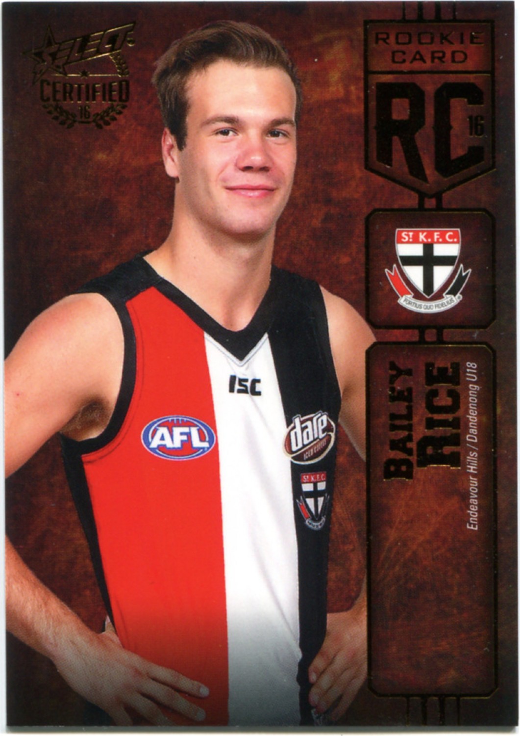 2016 Select Certified AFL Rookie Card RC49 Bailey Rice 204/240 - St Kilda Saints