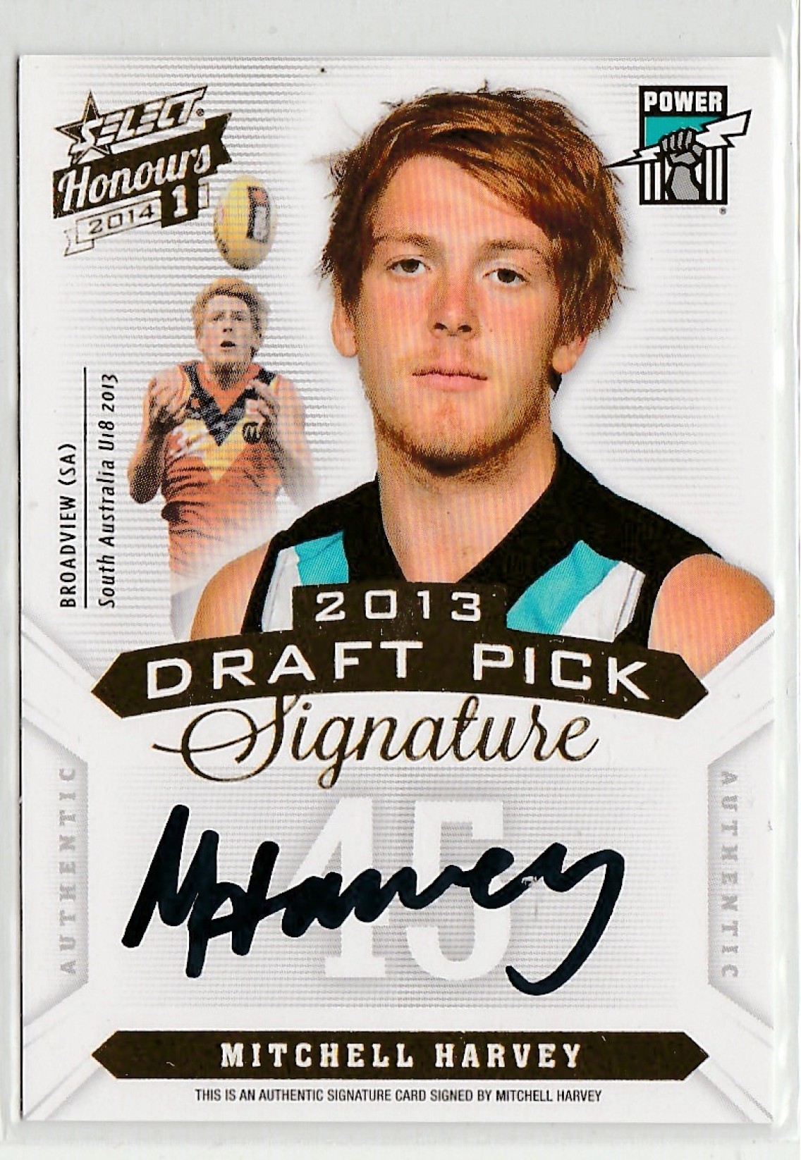 2014 AFL Select HONOURS 1 (2013) DRAFT PICK SIGNATURE - DPS21 Mitchell HARVEY (PORT ADELAIDE) No,9 of 400
