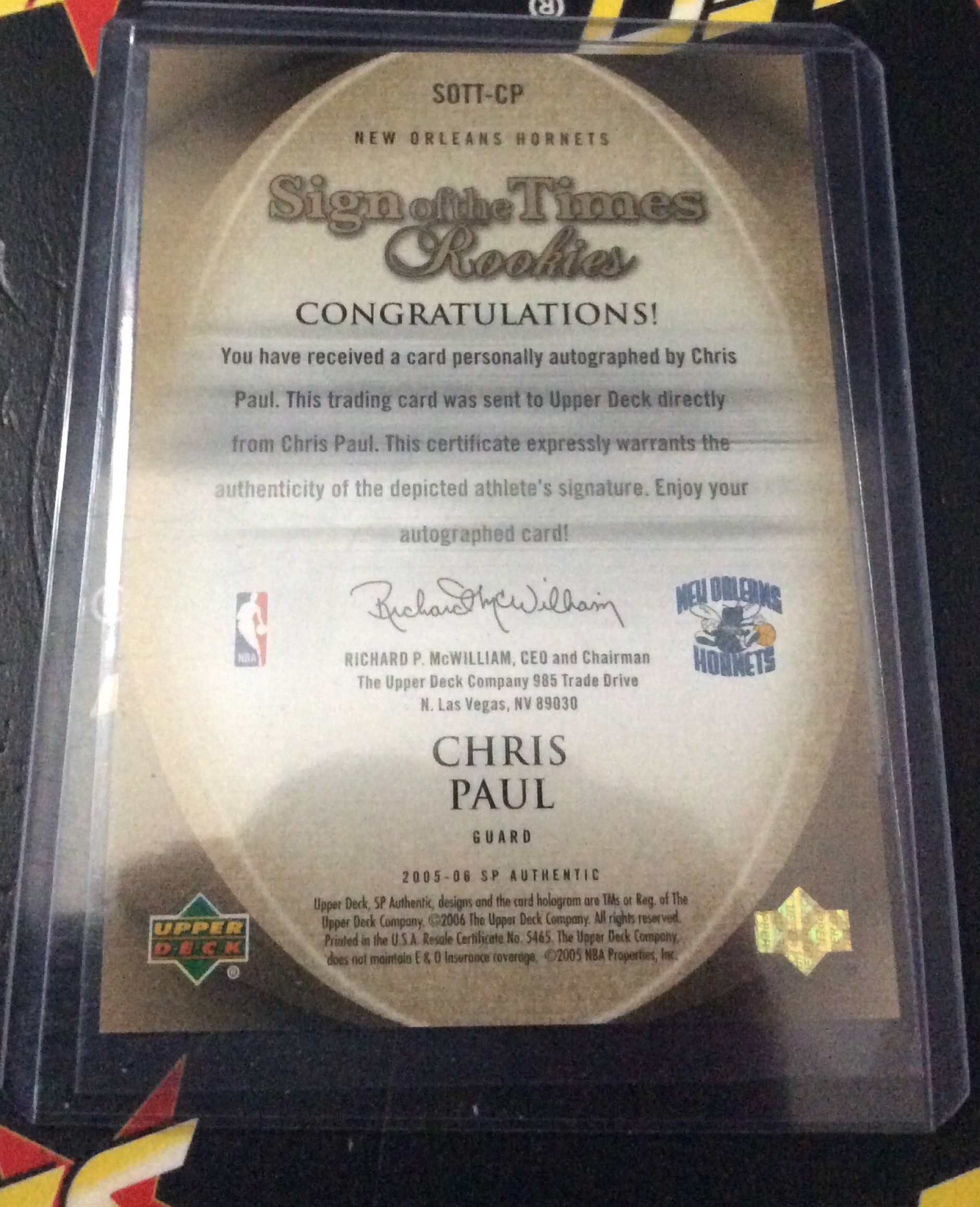 2005-06 NBA UPPER DECK SP AUTHENTIC SIGN OF THE TIMES CHRIS PAUL ROOKIE AUTOGRAPH - #11/100 HORNETS​