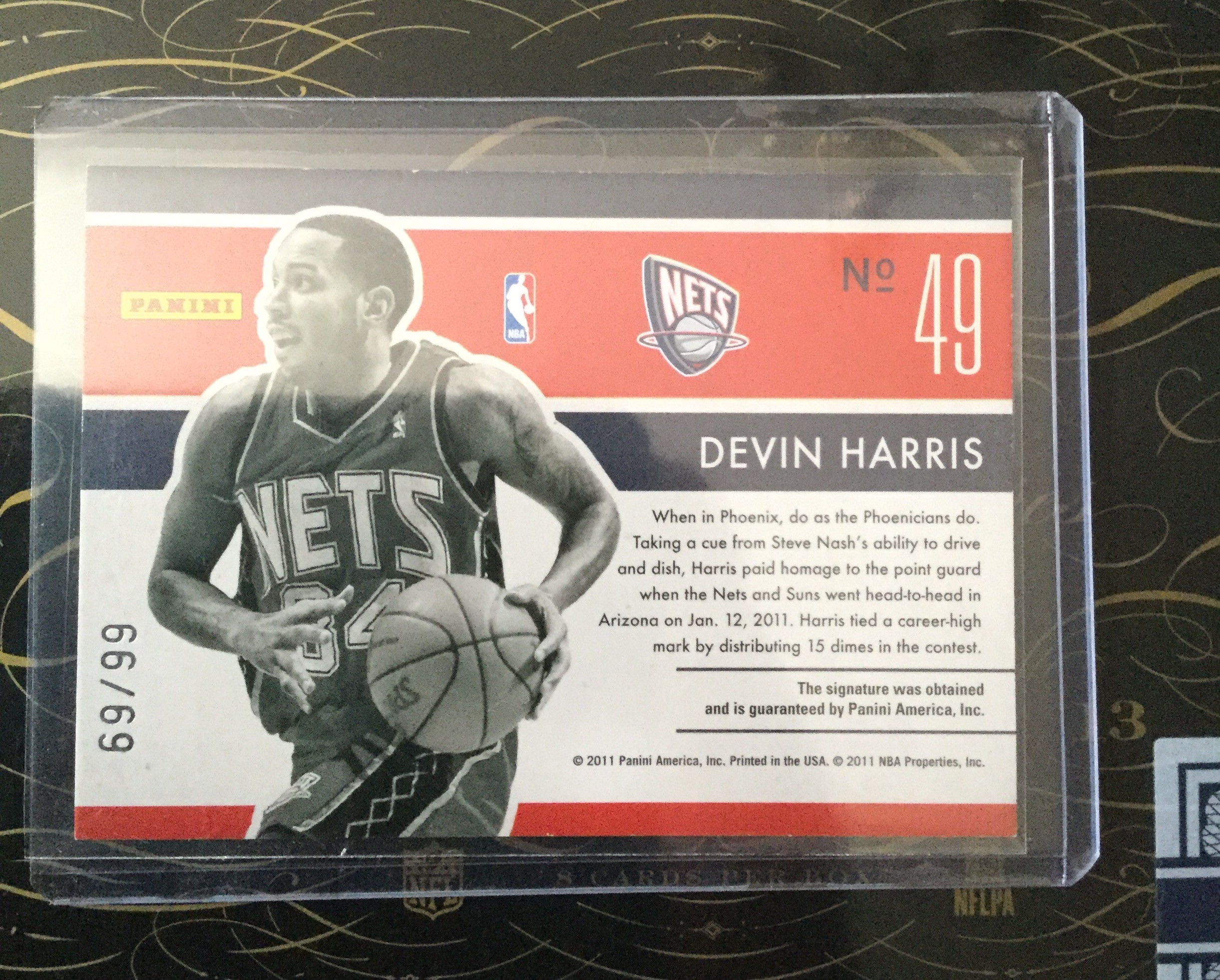 2010-11 PANINI NBA CLASSICS SIGNIFICANT SIGNATURES CARD DEVIN HARRIS #69/99