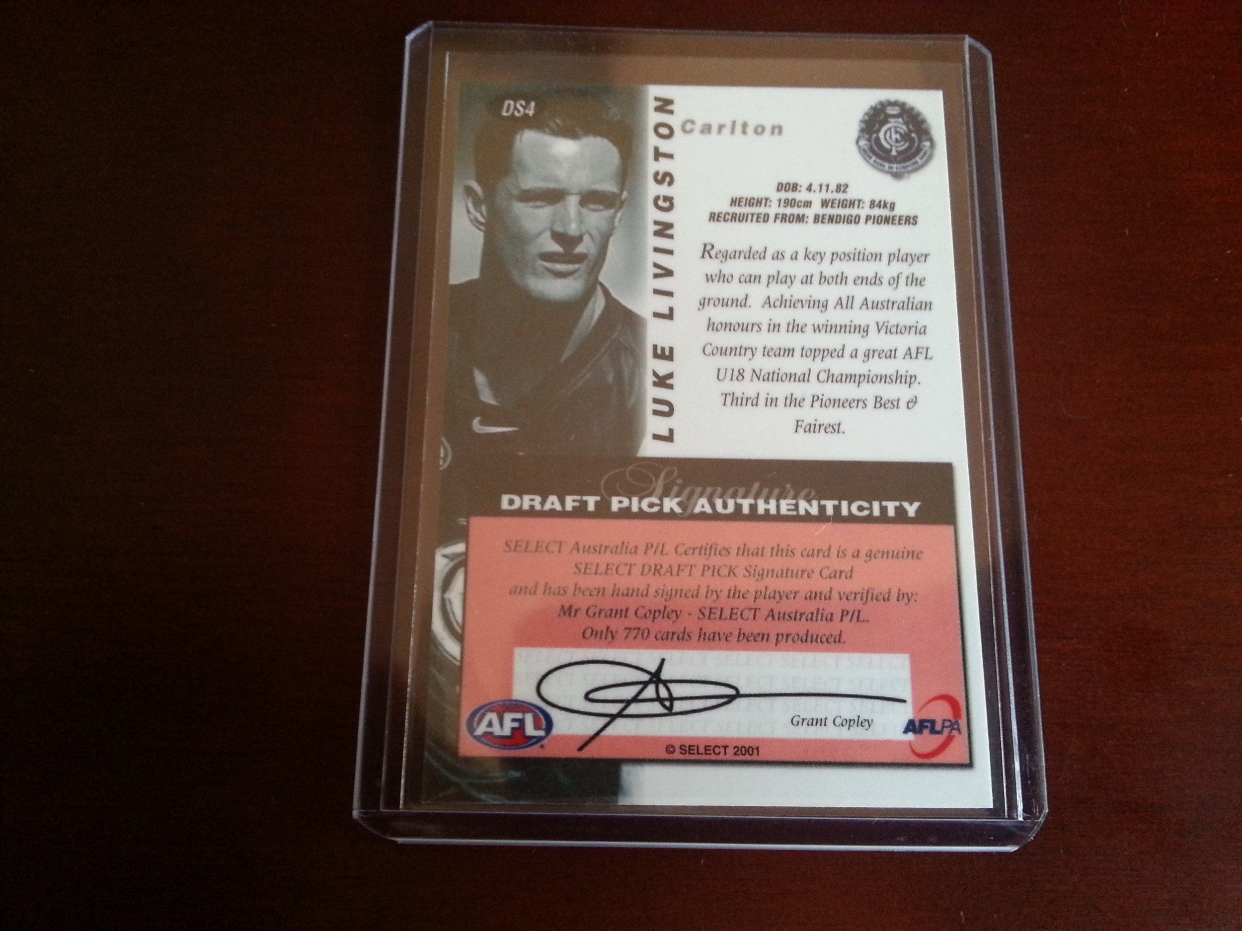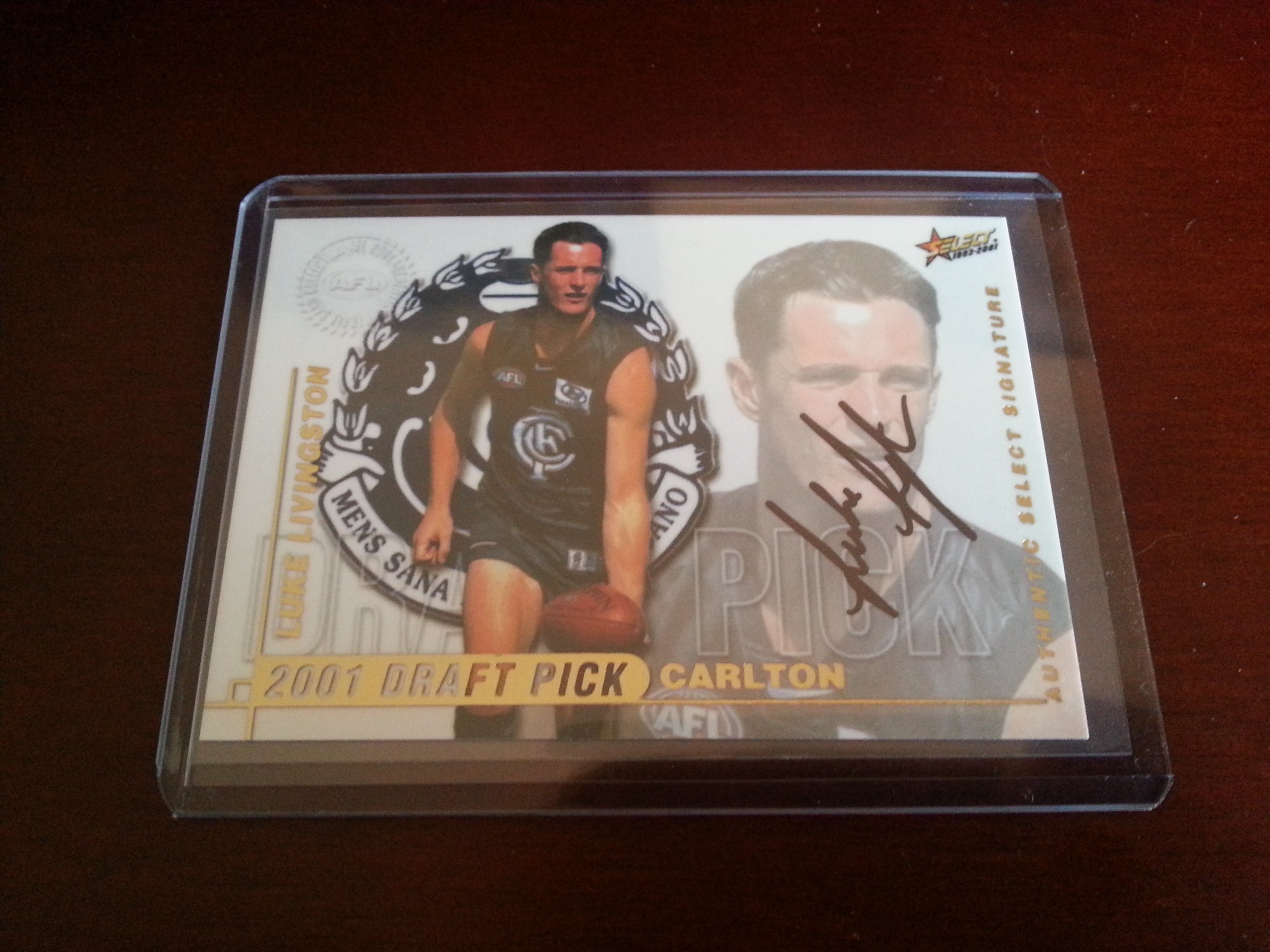 2001 SELECT AFL AUTHENTIC DRAFT PICK SIGNATURE - LUKE LIVINGSTON CARLTON
