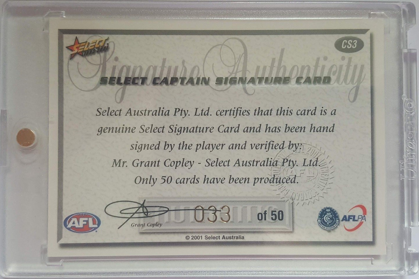 Item: 2001 Select AFL Authentic Captain Signature Card CS3 Craig Bradley 33/50 - Carlton Blues + REDEMPTION CARD not pictured