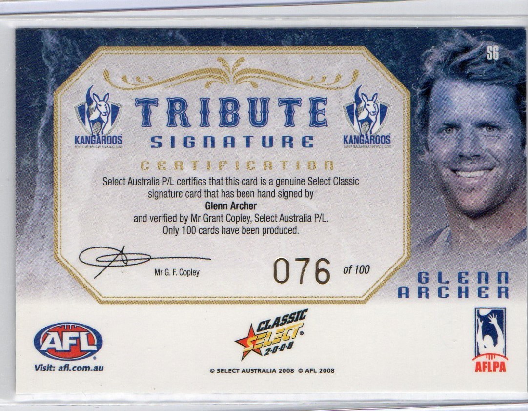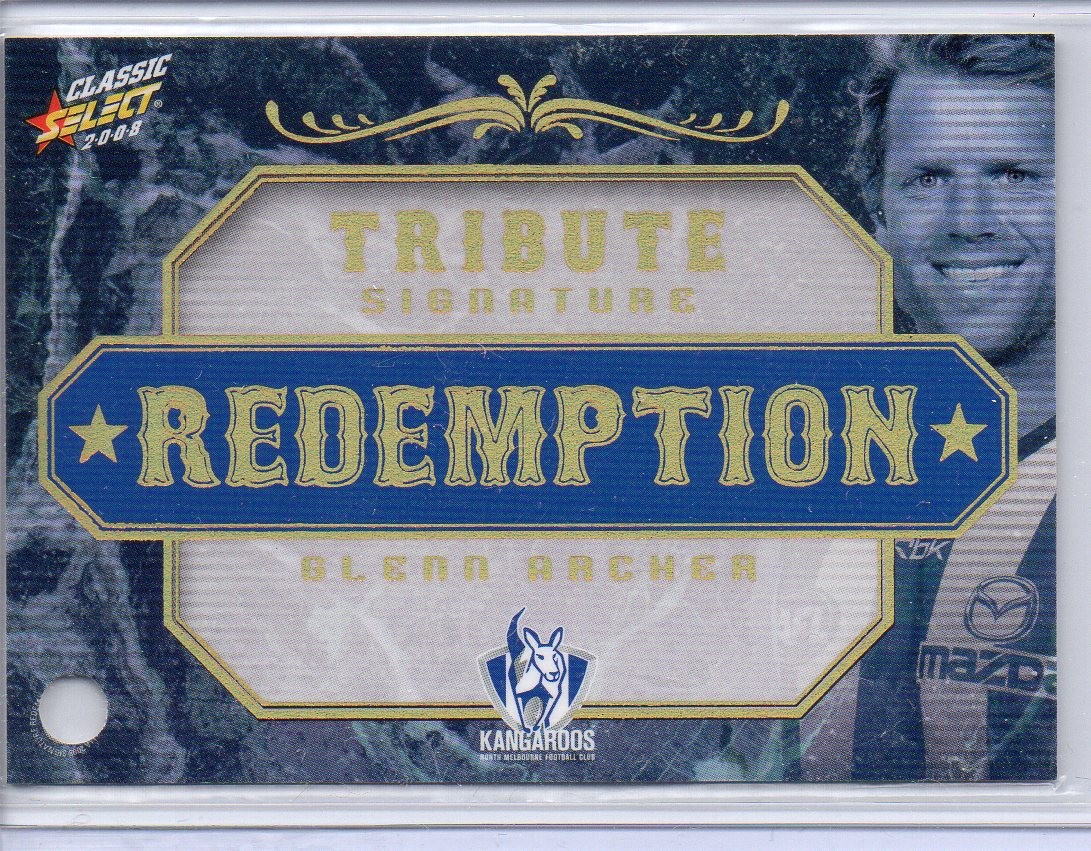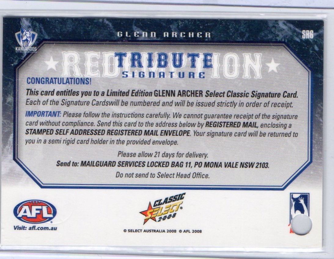 2008 Select Classic Tribute Signature Redemption Card S6 Glenn Archer - North Melbourne
