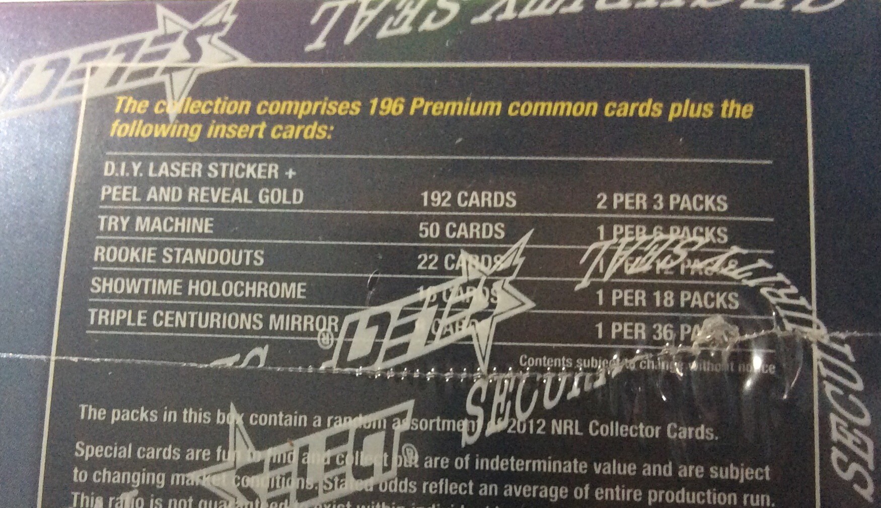 2012 NRL SELECT CHAMPIONS SEALED BOX - 36 PACKS.