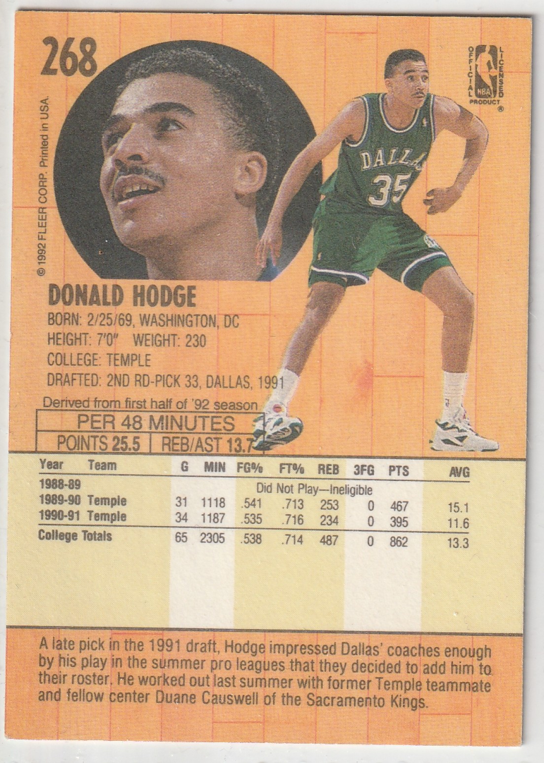 1991-92 FLEER #268 DONALD HODGE 🏀 NBA BASKETBALL CARD 🏀 EX+ Condition 💨