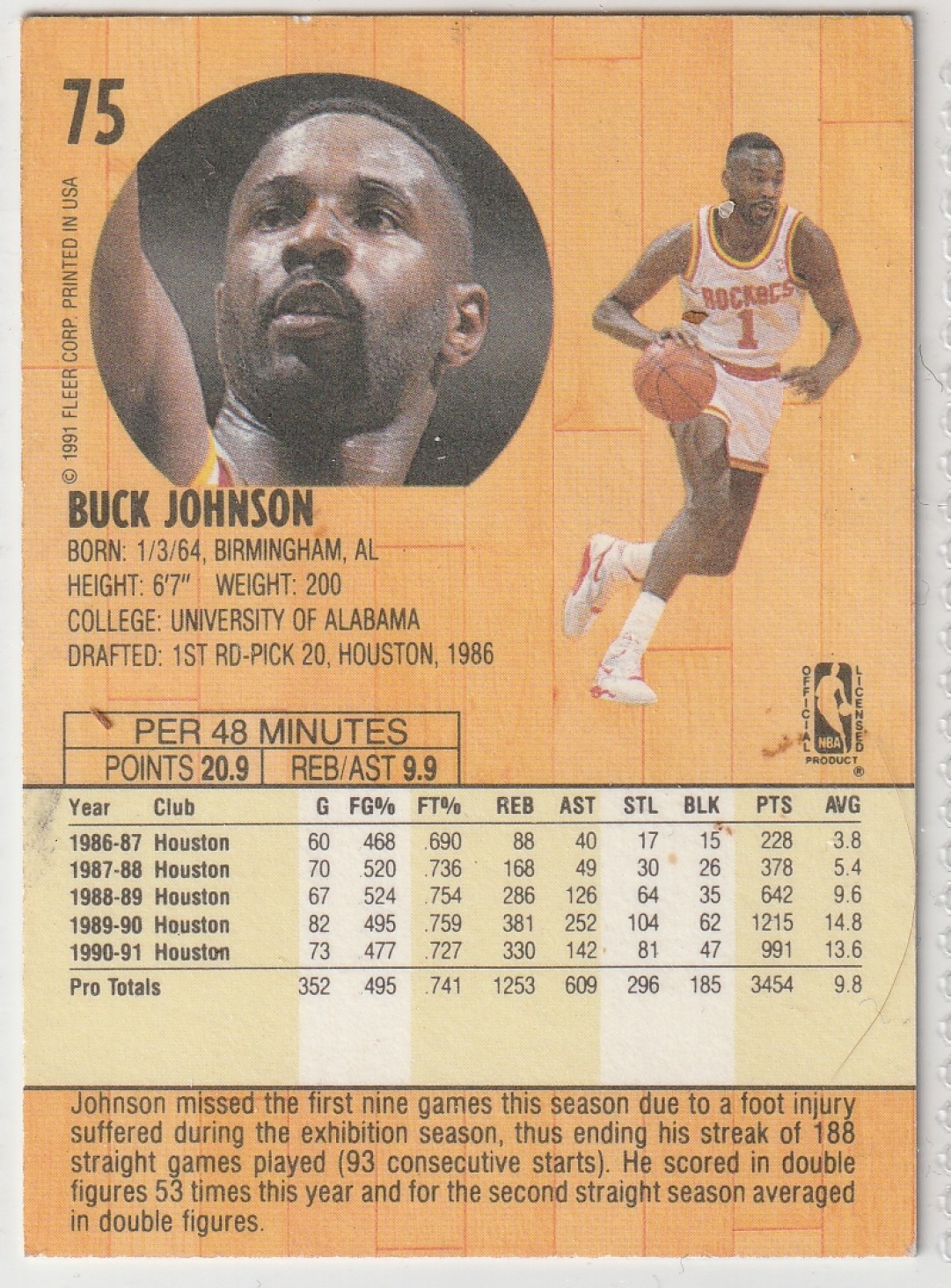 1991-92 FLEER #75 BUCK JOHNSON 🏀 NBA BASKETBALL CARD 🏀 EX+ Condition 💨