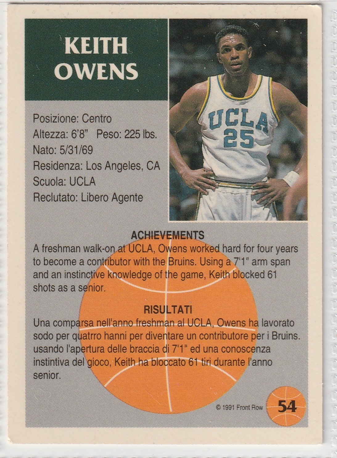 1991 FRONT ROW DRAFT PICK #54 KEITH OWENS 🏀🔥 BASKETBALL 💎 DRAFT PICKS 🔥🏀 EX Condition 💨