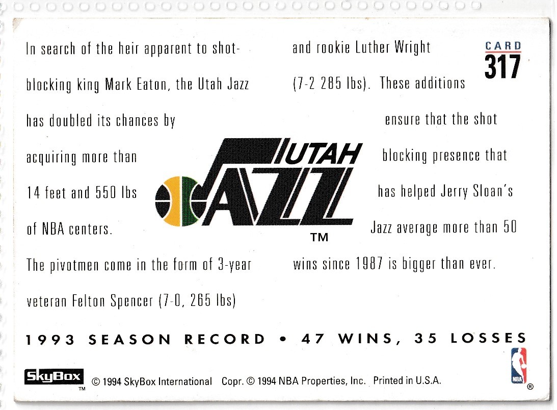 1993-94 SKYBOX #317 FELTON SPENCER/LUTHER WRIGHT 🏀 PREMIUM ⚫ NBA CARD 🏀 CHANGING FACES⚫