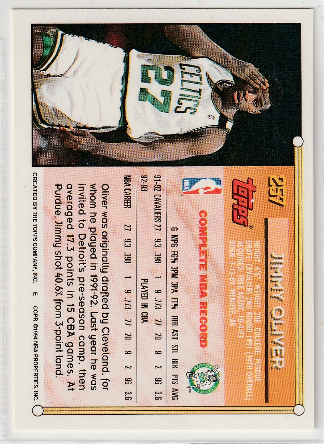 1993-94 TOPPS NBA #257 JIMMY OLIVER π₯π₯π₯ SERIES 2 CARDπππ MINT Condition π―ππ―