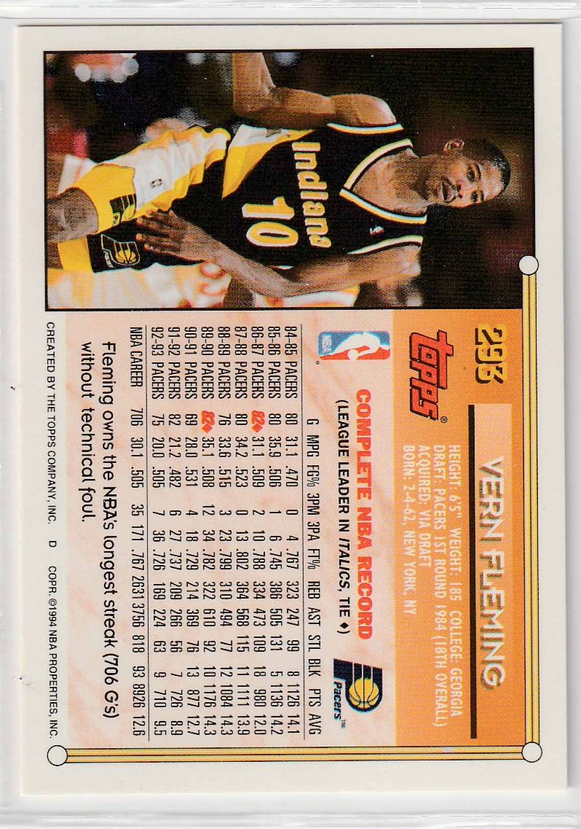 1993-94 TOPPS NBA #293 VERN FLEMING π₯π₯π₯ SERIES 2 CARDπππ MINT Condition π―ππ―